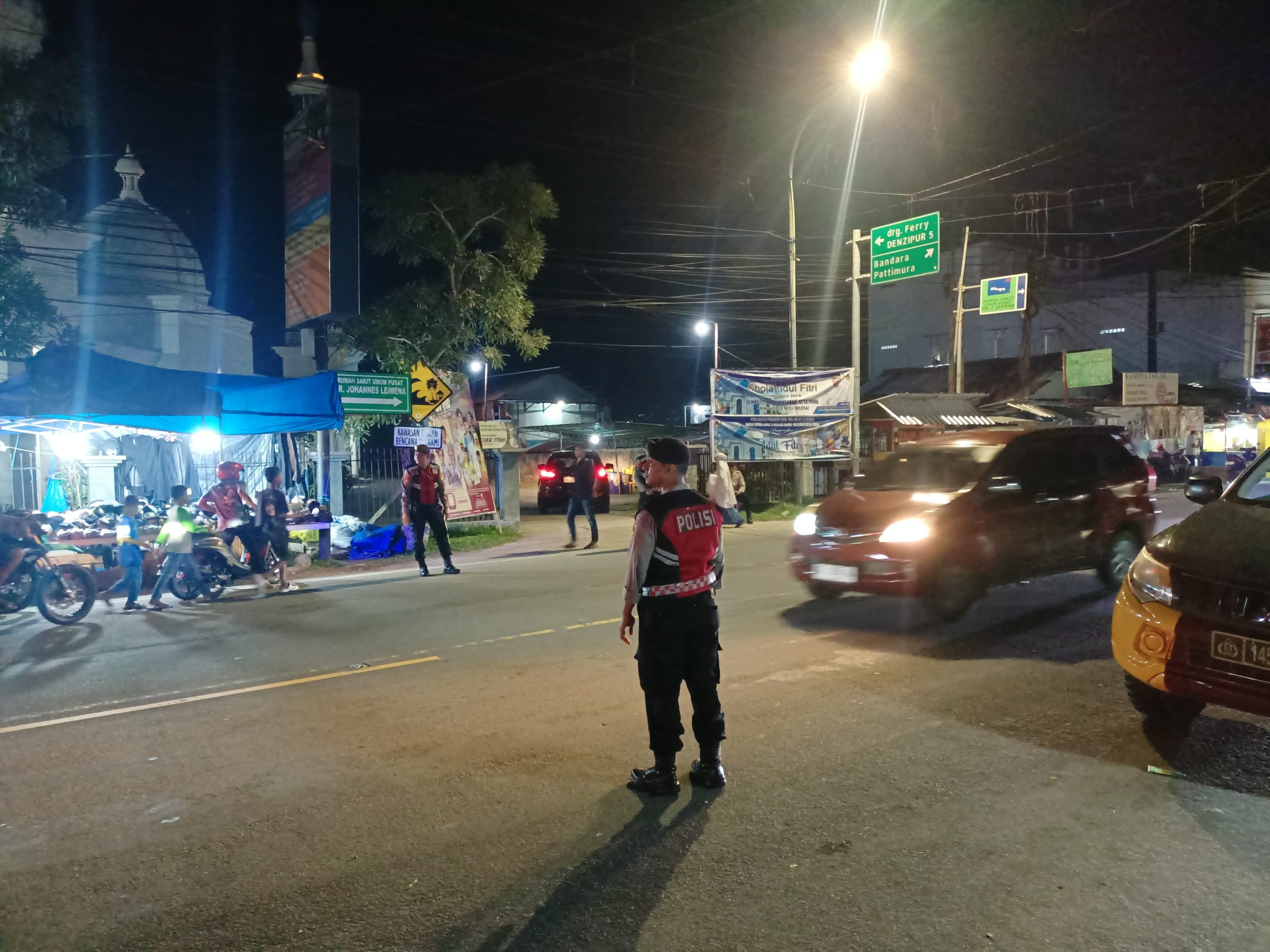 Selain mengamankan pelaksanaan shalat berjamaah, personel juga melakukan pengaturan arus lalu lintas di depan masjid yang berada di ruas jalan Y. Saranamual tersebut.