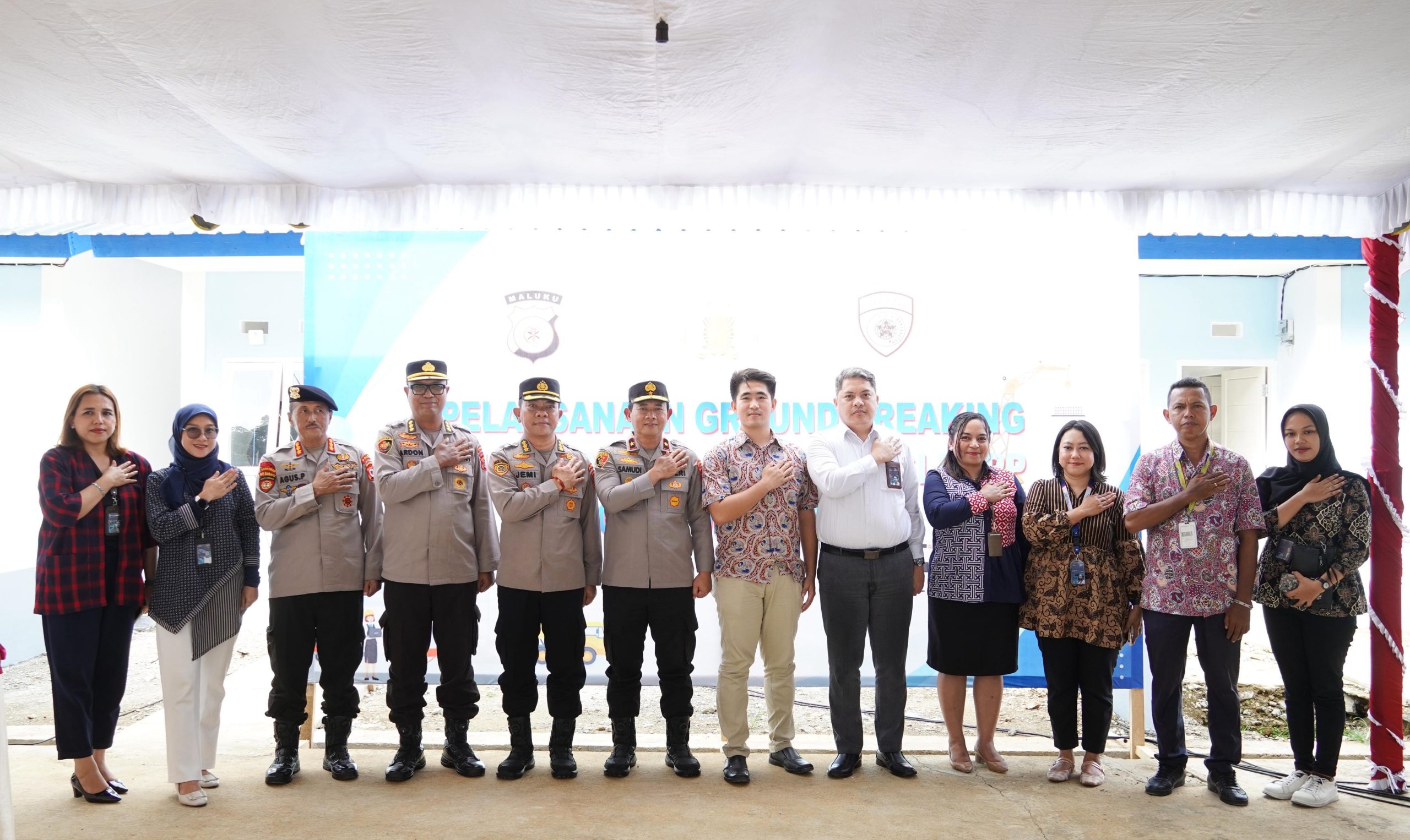 Peletakan batu pertama diikuti Wakapolda yang didampingi para pejabat utama Polda Maluku dari perumahan Telaga Tihu di Desa Suli, Kecamatan Salahutu, Kabupaten Maluku Tengah.