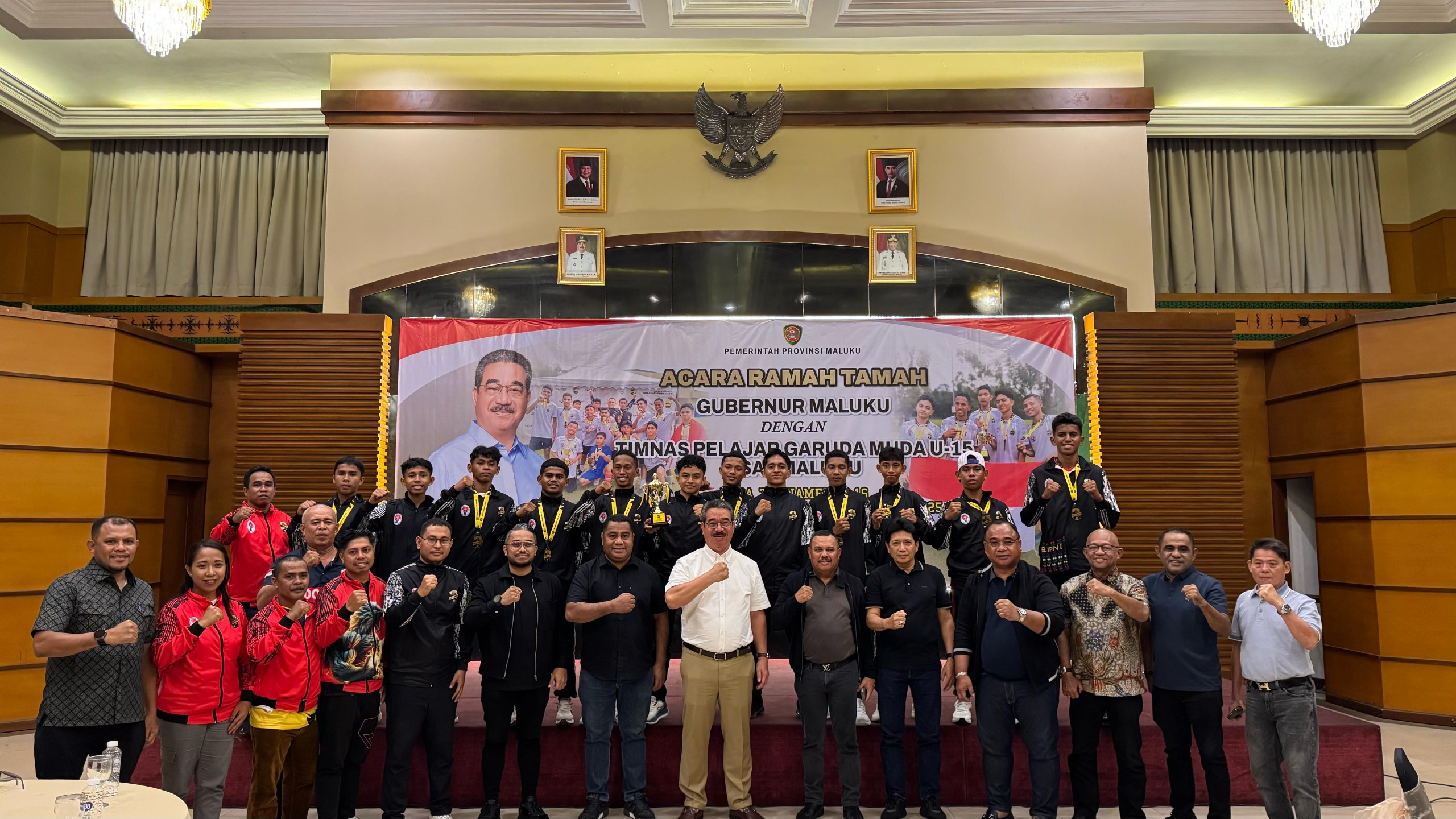 Jakartaberitasumbernews.com – Bangga dengan capaian sebagai juara setelah mengalahkan MRSM TrenDucks Malaysia dengan Skor 1-0, Gubernur Maluku Hendrik Lewerissa menggelar acara Ramah Tamah dengan Timnas Pelajar Garuda Muda U-15 asal Maluku, yang mengikuti Turnamen U-16 Shield Champions Kuala Lumpur Cup 2025, bertempat di GIIA Maluku Hotel, Jakarta Pusat, Selasa (29/4/2025) malam.