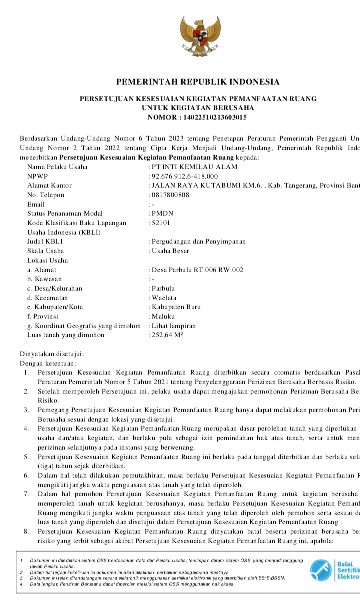 Ada surat pernyataan penjualan secara bersama yang di tanda tangani kedua pihak baik direktur utama PT. Inti Kemilau Alam dan koperasi Parusa Tanila Baru dengan pemiliknya adalah Ruslan Arif Soamole.SH.