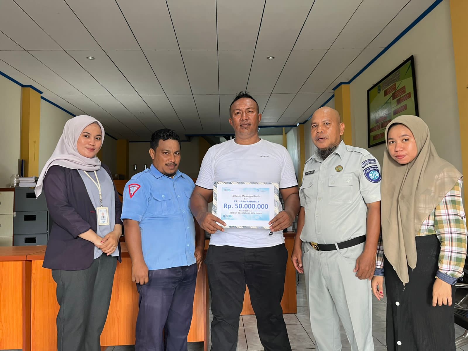 Jasa Raharja memberikan santuanang kepada korban laka lantas yang meninggal dunia sebesar 50 Juta Rupiah, dan di terima langsung oleh anak Almarhum, (Manzur)