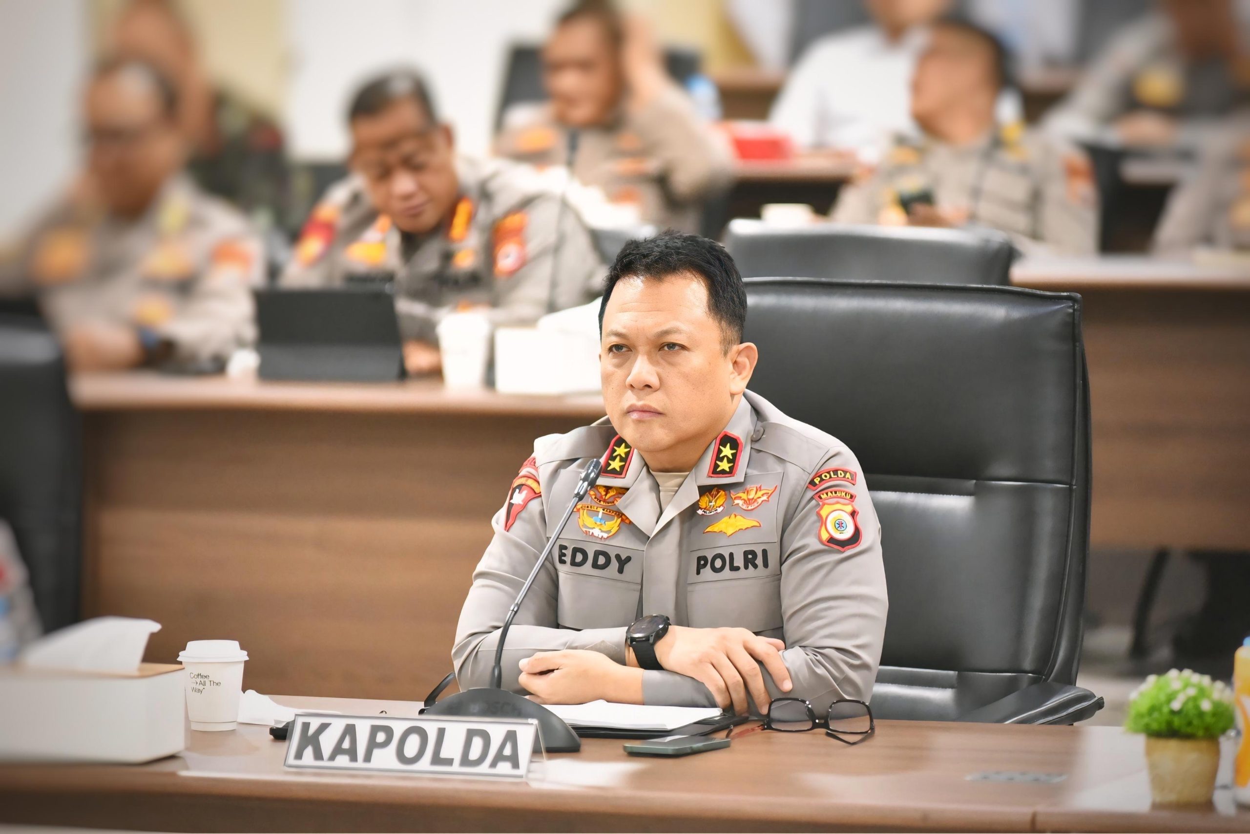 Rapat yang dilaksanakan secara virtual ini diikuti semua petinggi Polri di Indonesia, termasuk Kapolda Maluku, Irjen Pol. Drs. Eddy Sumitro Tambunan, M.Si, yang didampingi Wakapolda Brigjen Pol. Samudi S.IK., M.H. Turut hadir Irwasda Maluku Kombes Pol Marthin Luther Hutagaol S.IK.