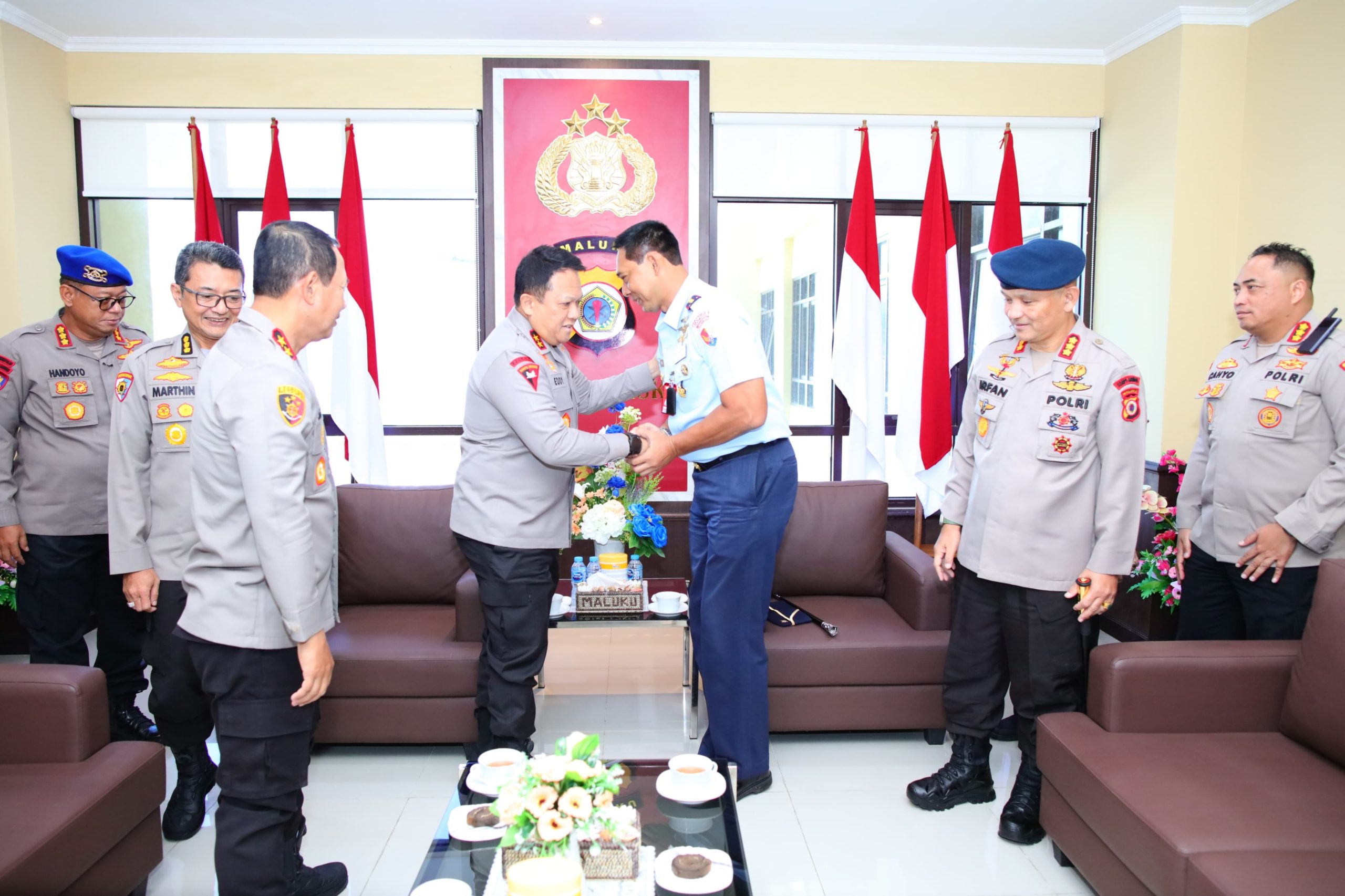 Kapolda Maluku menyambut baik kunjungan Danlanud Pattimura yang didampingi sejumlah pejabat utama Lanud Pattimura Ambon.