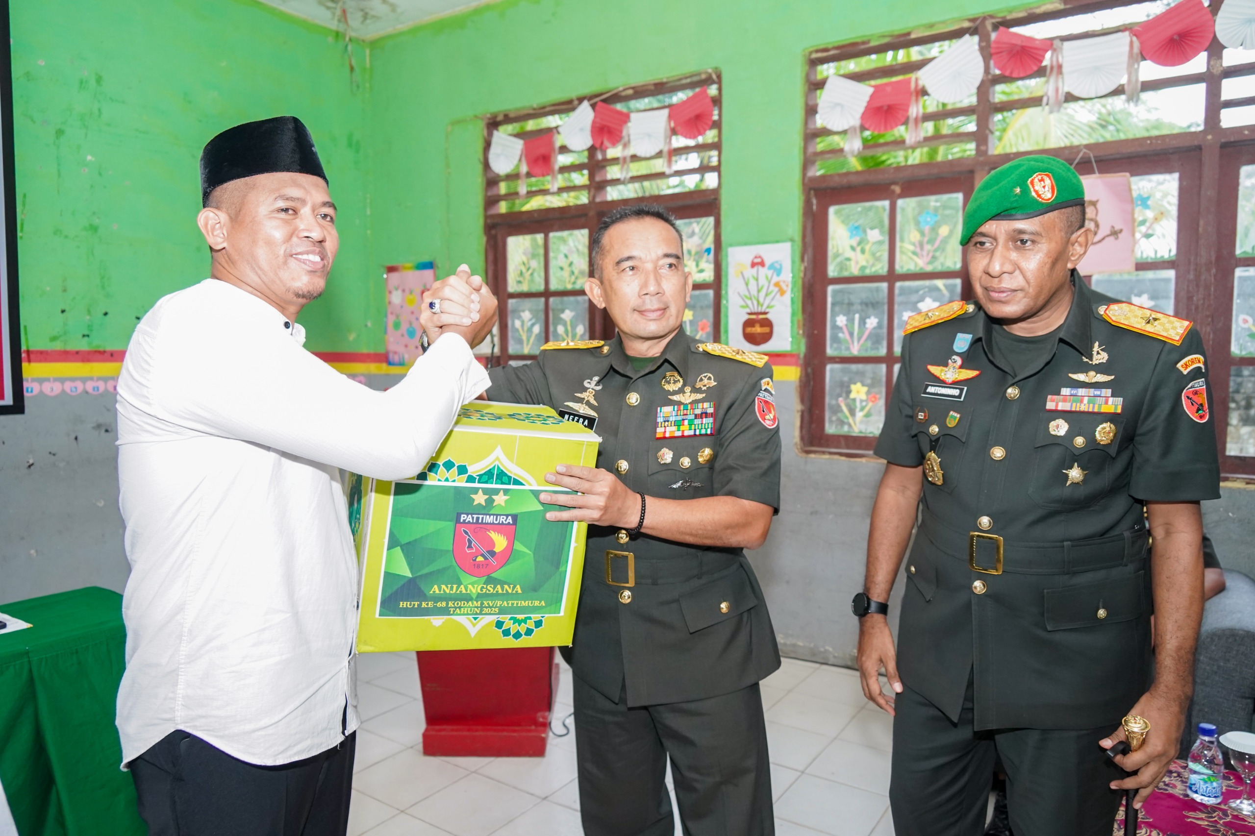 Ambon – beritasumbernews.com – Dalam rangka memperingati Hari Ulang Tahun (HUT) ke- 68, Kodam XV/Pattimura melaksanakan kegiatan anjangsana, berupa pemberian santunan kepada anak-anak Pondok Pesantren, Panti Asuhan dan keluarga anggota Kodam XV/Pattimura yang sakit, Senin (19/05/2025). Adapun tempat yang dikunjungi yaitu, Ponpes Yayasan Al Madinah, Panti Asuhan SLB Tuna Rungu Karya Kasih, Rumah Anggota dan RST TK II dr. J. A. Latumeten Ambon.