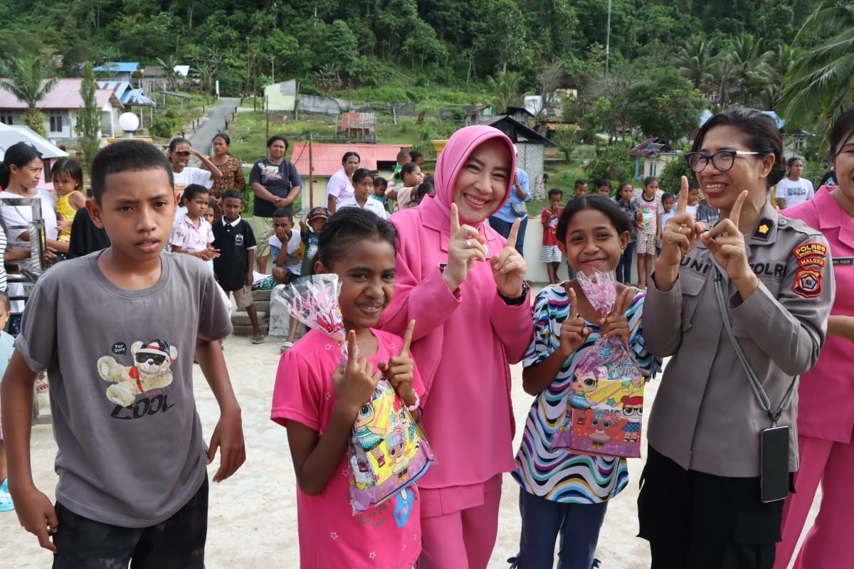 Personel Polwan Polres Maluku Tengah bersama pengurus Bhayangkari dilibatkan dalam aksi sosial yang bertujuan membantu memulihkan kondisi mental dan emosional anak-anak yang terdampak konflik pada beberapa waktu lalu.