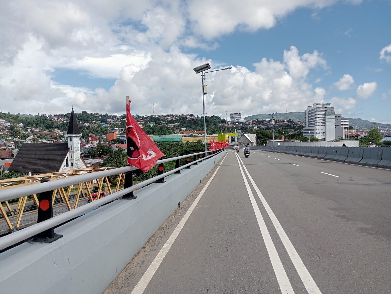 Seribu tiga ratus bendera PDI Perjuangan yang terpasang disisi kiri- kanan Jembatan Merah Putih tersebut, hingga kini masi tersisa dua puluh (20) buah saat ini. Bendera-bendera itu, terpampang sejak dimeriahkan “Hari Lahir Pancasila yang jatuh pada tanggal 01 Juni 2025, dimana pada moment tersebut, partai besutan Megawati Soekarnoputri ini memaknai Hari Lahir Pancasila yang dirangkaikan dengan kegiatan Rapat Koordinasi (Rakor) Fraksi DPR RI, DPRD provinsi, serta DPRD kabupaten/kota se-Maluku.