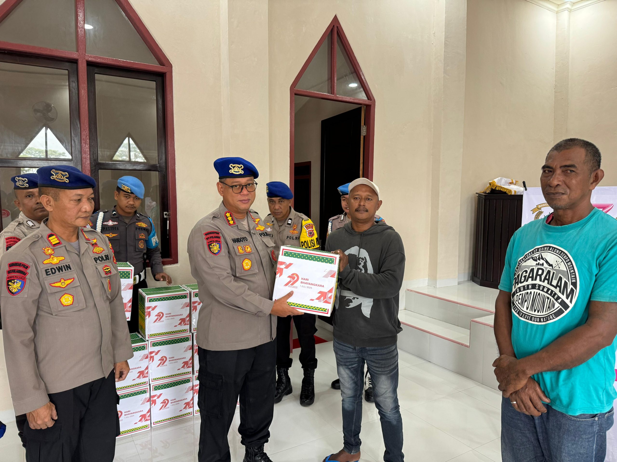 Ambon – beritasumbernews.com -Personel Direktorat Polairud Polda Maluku melaksanakan kegiatan sosial dalam menyambut Hari Bhayangkara ke-79 Tahun.