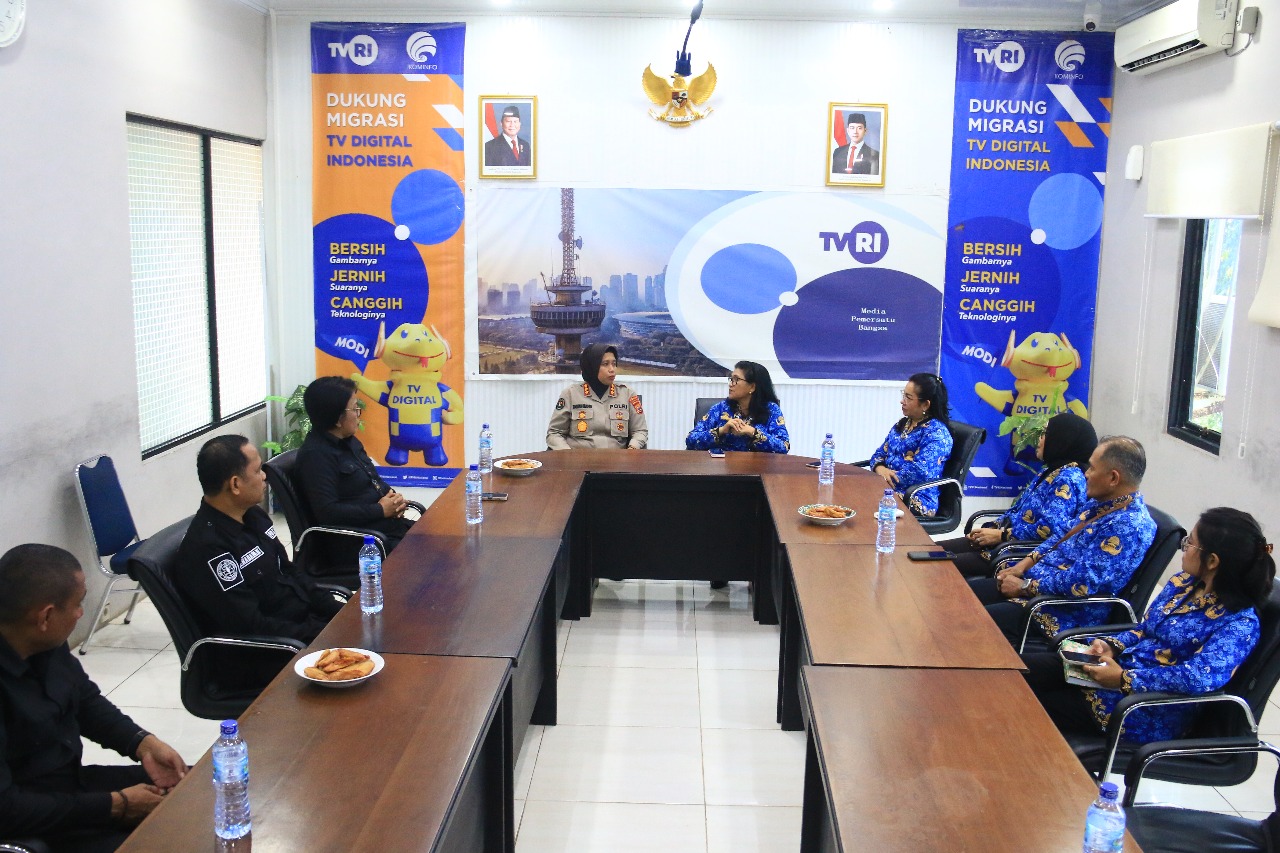 Saat bersilaturahmi di TVRI Maluku, Kombes Rositah diterima Kepala LPP TVRI Stasiun Maluku, Sanny Aprilia Linda Damanik beserta staf.