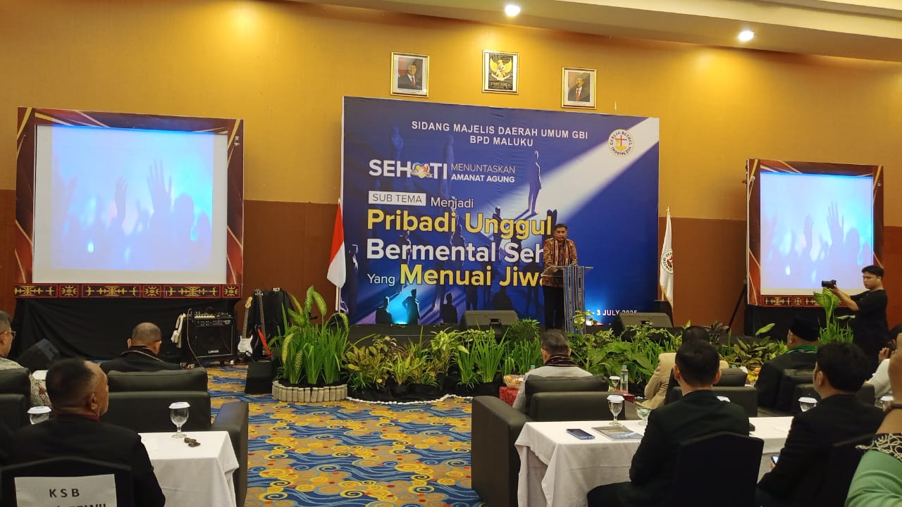 Ambon – beritasumbernews.com – Pemerintah kota Ambon menyambut dengan penuh suka cita dan kebahagiaan pelaksanaan sidang majelis daerah umum badan pengurus daerah Maluku gereja Bethel Indonesia tahun 2025-2026,” Walikota Ambon Bodewin Watimena dalam sikapur sirih di sela acara sidang majelis daerah umum GBI BPD Maluku dengan sub tema”Pribadi unggul. bermental sehat menuai jiwa.Selasa 1/07/2025