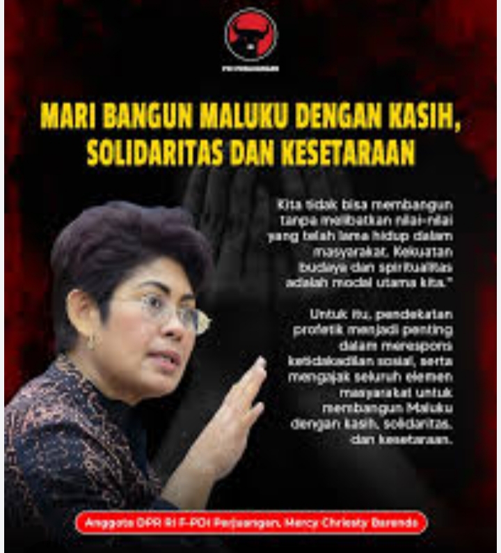“Saya berharap seluruh potensi di Maluku mendukung Ibu Mercy. Beliau akan bekerja keras memastikan aspirasi rakyat Maluku tersampaikan di level pusat, baik lewat DPR RI maupun DPP,” pungkasnya.