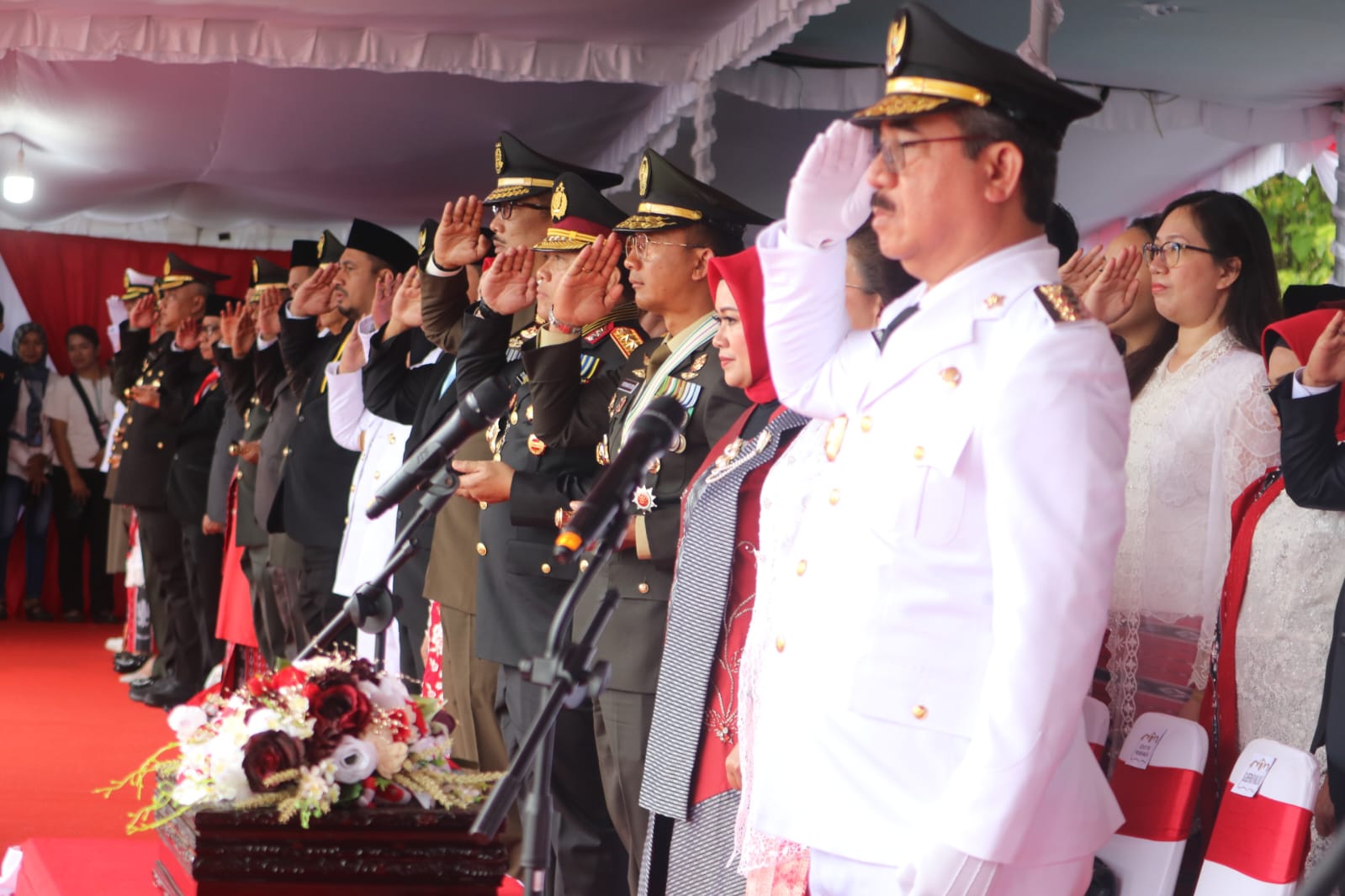 Upacara peringatan detik-detik Proklamasi Kemerdekaan RI ke-80 di tingkat Provinsi Maluku berlangsung khidmat dan tertib. Hadir dalam upacara ini antara lain Pangdam XV Pattimura, Kapolda Maluku, Danlantamal IX Ambon, Danlanud Pattimura, Kepala BIN Maluku, Ketua DPRD Maluku, Sekretaris Daerah Provinsi Maluku, Pimpinan instansi vertikal, Pimpinan BUMN/BUMD, Pimpinan OPD lingkup Pemprov Maluku, para veteran, tokoh agama, dan undangan lainnya. (Chey)