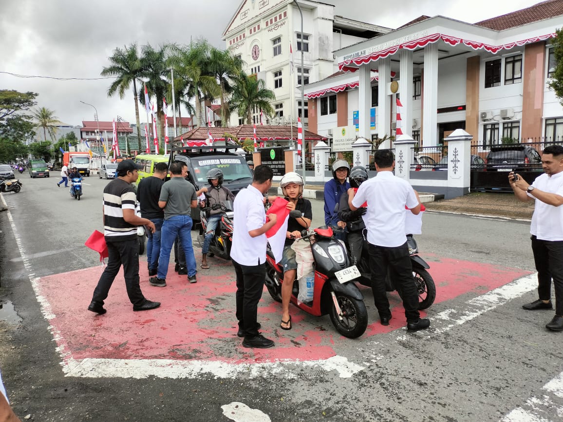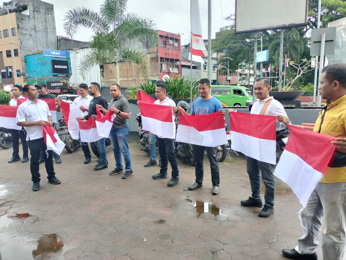 Sebanyak 150 helai bendera merah putih dibagikan secara langsung kepada warga dan para pelaku usaha di sejumlah ruas jalan utama Kota Ambon, seperti Jl. Sultan Hairun, Jl. A.Y. Patty, Jl. Pala, dan Jl. Slamet Riyadi. Dari total jumlah tersebut, 50 helai merupakan bendera berukuran besar dan 100 helai berukuran mini.