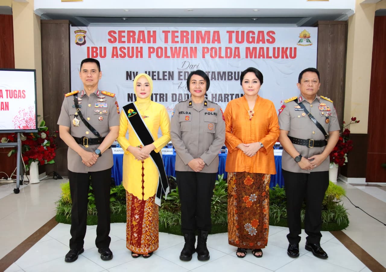 Sertijab Ibu asuh Polwan diawali dengan pemasangan kain salempang Ibu Asuh Polwan Polda Maluku kepada Ny. Fitri Dadang Hartanto. Kemudian dilanjutkan dengan pemberian buket bunga dari Pakor Polwan Polda Maluku.