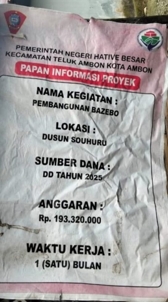 Ambon – beritasumbernews.com – Polemik seputar proyek pembangunan gazebo di Desa Hatiwe Besar kembali mencuat. Sorotan datang dari tokoh masyarakat desa, Helmi Laisatamu, yang menilai terdapat kejanggalan serius pada nilai anggaran proyek.Kepada Media Pos Ambon, Helmi membeberkan hasil percakapannya via WhatsApp dengan pengusaha galian bernama Wilson. Wilson mengaku menerima informasi dari Lery, staf Negeri Hatiwe Besar, bahwa nilai proyek bukan Rp193 juta seperti tertera di papan proyek, melainkan sekitar Rp187 juta—belum dipotong PPN dan PPh.“Kalau memang anggarannya Rp187an juta, kenapa di papan proyek tertera Rp193 juta? Proyek itu sudah selesai, papan proyek juga sudah berdiri sejak awal. Kenapa baru sekarang muncul klarifikasi seperti ini?” tegas Helmi. Ambon (14/07/2025)