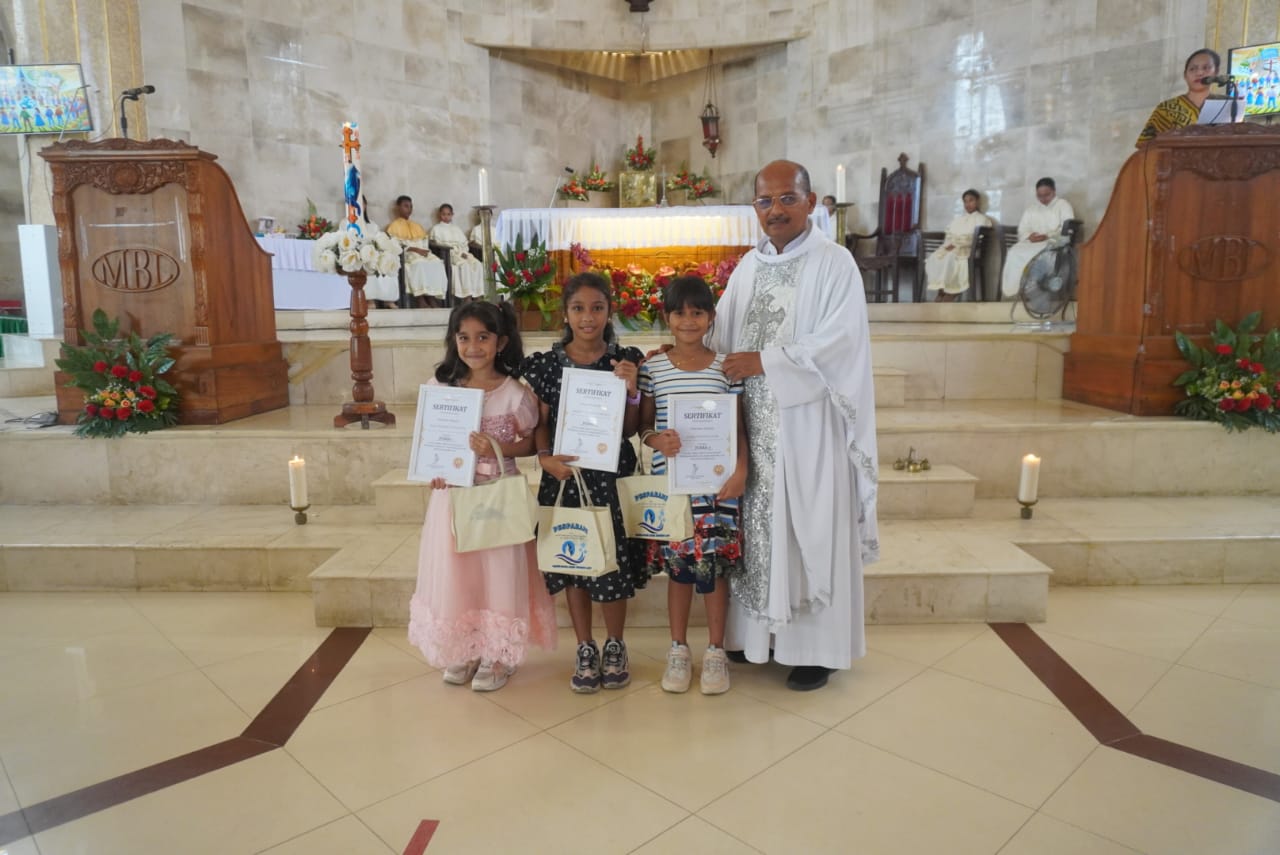 “Hari raya Kristus Raja Semesta Alam, mengingatkan kita bahwa hidup hanya menemukan kedalaman sejati bila kita menempatkan Kristus sebagai raja di hati dan keluarga kita, ” kata RD Man dalam Homilinya, Minggu (23/11/25).