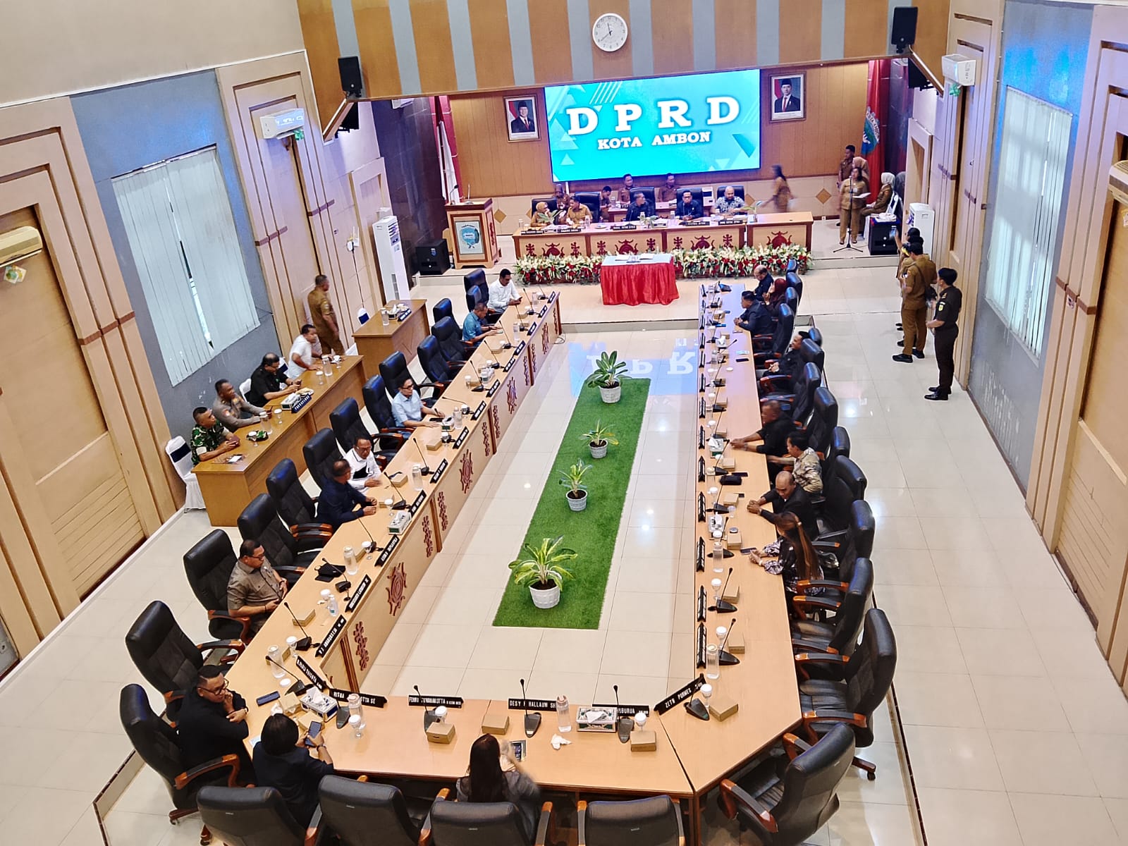 Rapat paripurna yang dipimpin Wakil Ketua I DPRD Kota, Gerald Mailoa, ini dihadiri Wali Kota Ambon Bodewin M. Wattimena, Wakil Wali Kota Ely Toisutta, Sekkot Robby Sapulette, Ketua DPRD Morits Tamaela, jajaran Forkopimda, dan pimpinan OPD.