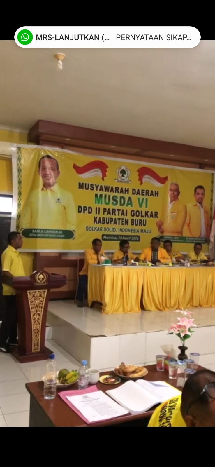 Namlea – beritasumbernews.com – Dinamika Musda VI DPD II Partai Golkar Kabupaten Buru memanas. Ketua Pimpinan Sidang, Burhan Latuconsina, menuai sorotan setelah pergi ke Ambon untuk berkoordinasi dengan DPD I Partai Golkar Maluku tanpa melibatkan tiga pimpinan sidang lainnya.