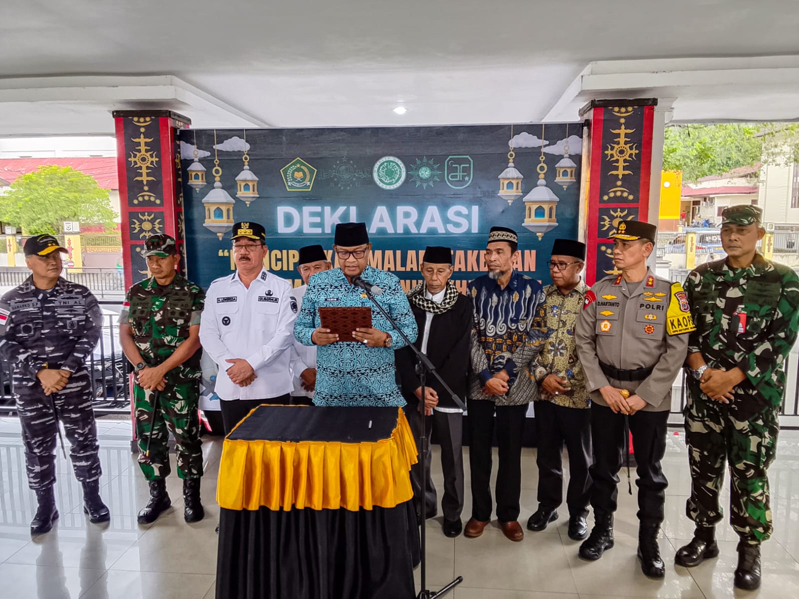 Usai penandatanganan deklarasi dilanjukan dengan pembacaan deklarasi oleh kakanwil agama provinsi Maluku, Dr. M. Yamin, S.Ag., M.Pd.I. berupa Seruan Pemuka Agama Islam Maluku Menyambut Hari Raya Idulfitri 1447 Hijriah.