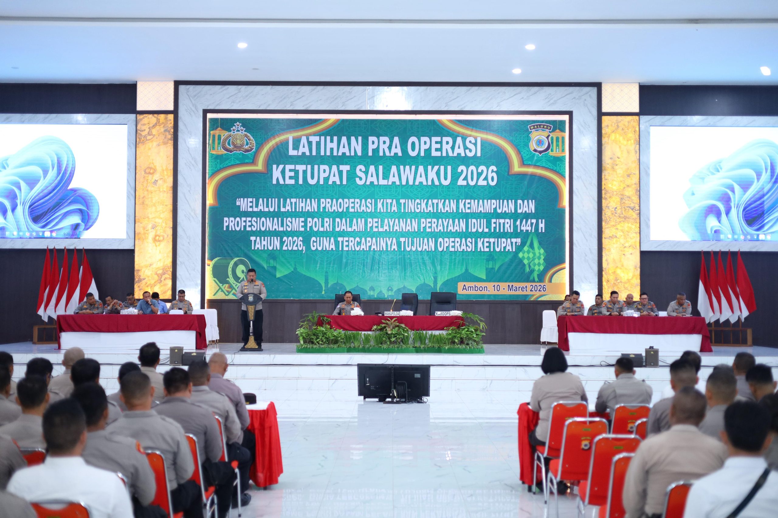 Dalam kegiatan tersebut turut hadir Irwasda Polda Maluku, para Pejabat Utama Polda Maluku, Kapolresta Pulau Ambon dan P.P. Lease bersama PJU Polresta Ambon, para Kapolsek jajaran serta personel gabungan Polda Maluku dan Polresta Ambon yang akan terlibat langsung dalam pelaksanaan Operasi Ketupat Salawaku 2026.
