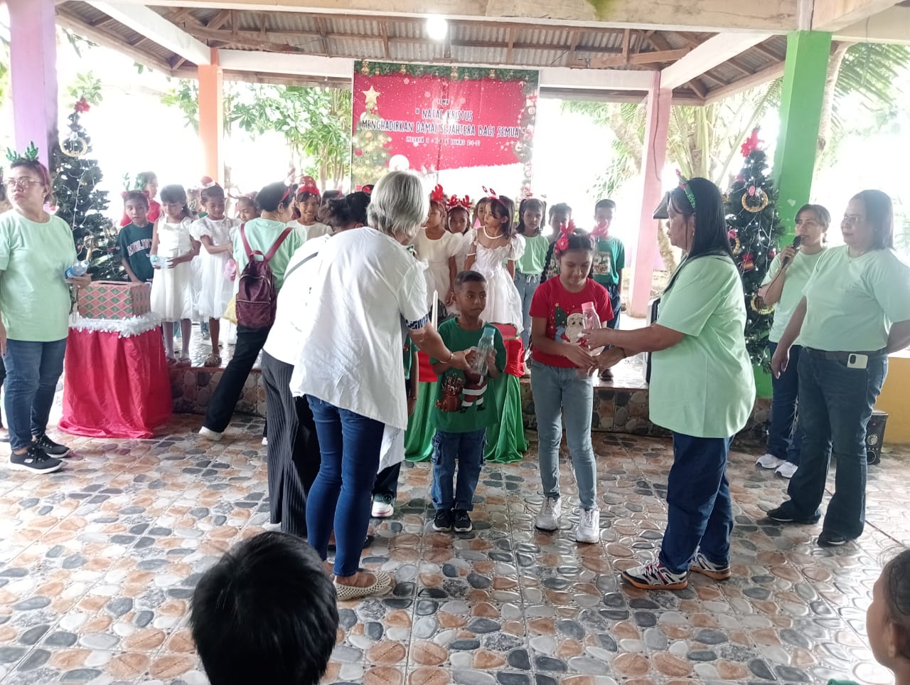 Sementara itu sebelum dimulainya proses pembagian buku raport anak-anak SDN 9 Ambon, para dewan guru dan anak-anak terlebih dahulu mengikuti kegiatan ibadah Natal yang dipusatkan di pantai Ronawiska Latuhalat.